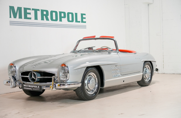 • Mercedes-Benz 300 SL Roadster: con numeri di telaio corrispondenti, consegnata originariamente negli Stati Uniti e restaurata in Francia, conserva l’interno in pelle originale e la vernice è stata recentemente ritoccata.