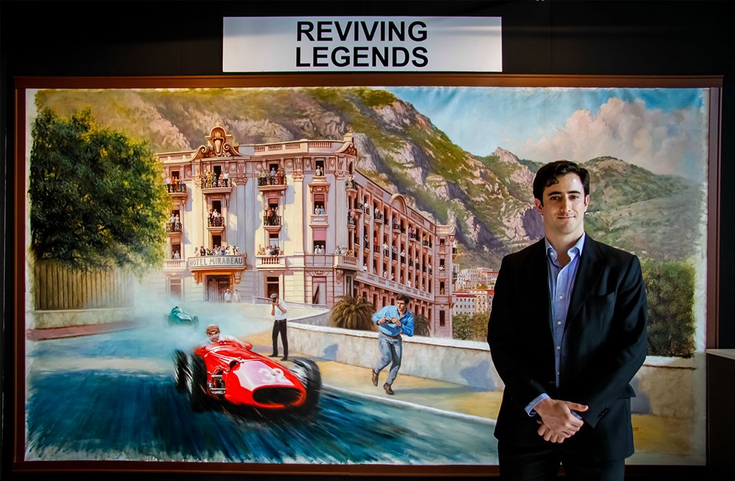 Felipe Barreiro è un pittore argentino.A Padova da Buenos Aires, i suoi quadri che trasportano lo spettatore nel momento esatto nel quale l’epopea dei motori passava sfrecciando. “Il realismo – dice – è necessario per essere parte della storia; tornare con la mente nei momenti durante i quali accadeva”. I suoi soggetti, perciò, immortalano l’istante di una corsa, di una curva, di un’impresa motoristica, raffigurate come se si aprisse sul momento una finestra e si cogliesse l’istante di un grande pilota che accelerava e spariva all’orizzonte.